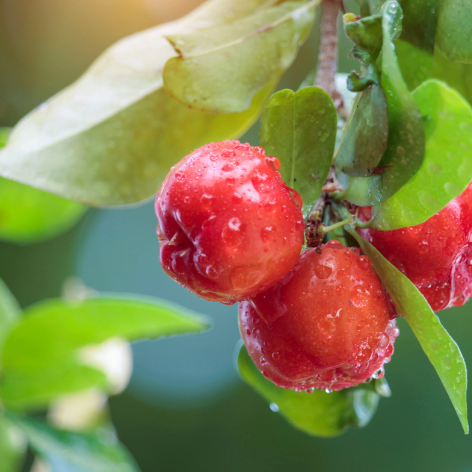 Ursprünglich heimisch in Mittel- und Südamerika bin ich mittlerweile auch in Europa allseits bekannt als kraftvolle Superfrucht! Meine kleinen Früchte zählen zu den Pflanzen mit den höchsten Gehalten an natürlichem Vitamin C. Neben dem hohen Vitamin C-Gehalt biete ich auch andere Nährstoffe wie B-Vitamine, Kalium, Calcium und Eisen. Außerdem gelte ich als Quelle für wichtige Pflanzenstoffe wie Flavonoide und Polyphenole. All diese Inhaltsstoffe machen meine kleinen Superfrüchtchen zu einer wertvollen Ergänzung deiner Ernährung.